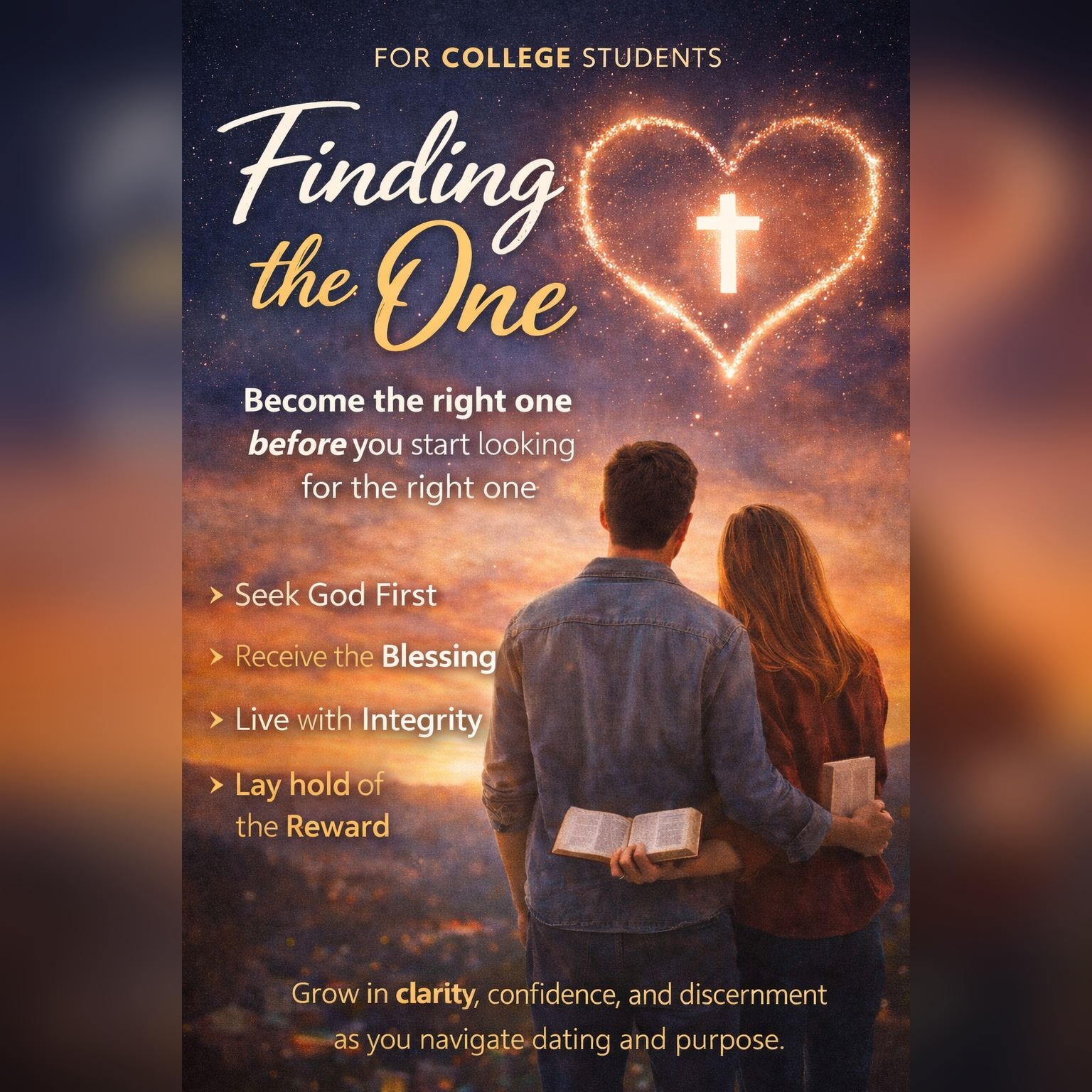 Finding the One challenges young men and women to become the right one before searching for the right one, placing their identity and security firmly in God first. Through practical wisdom and biblical insight, students learn to recognize healthy character, identify warning signs, and commit to living with integrity as they prepare for future relationships. This conference is for youth and college students who want clarity, confidence, and discernment as they navigate dating and purpose.